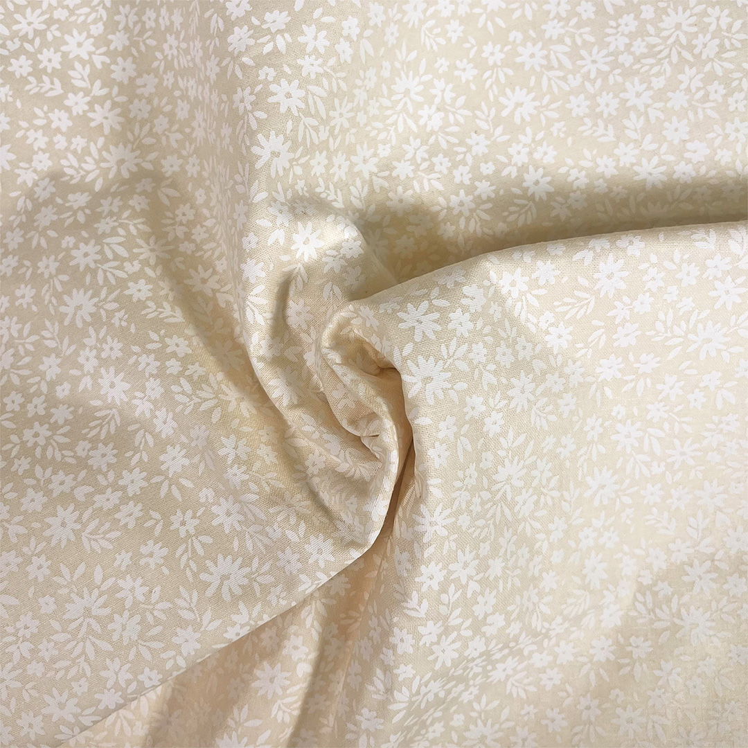 Natural colour tone on tone cotton essentials, for quilt backing and crafts. Featuring a small white ditsy floral design.
