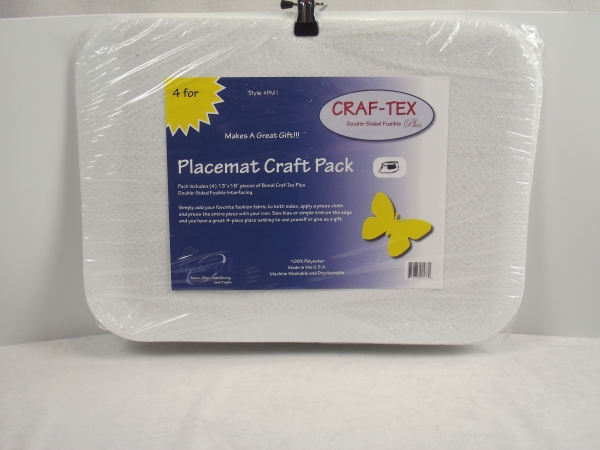 Simply add your favourite fashion fabric to both sides, apply a press cloth and press the entire piece with your iron. Sew bias or simple trim on the edge and you have a great 4-piece place setting to use yourself or give as a gift.