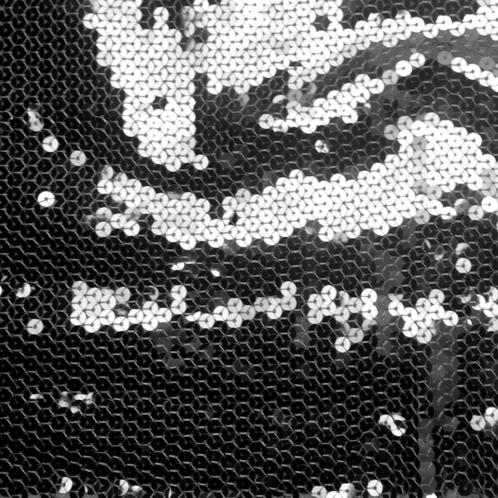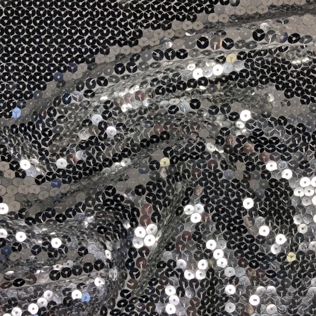 Synthetic knit fabric emroidered with sequins. Ideal for eveningwear, dancewear and stagewear.